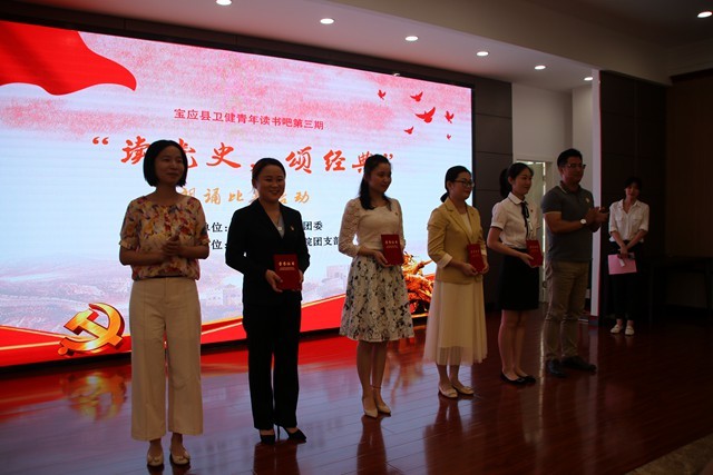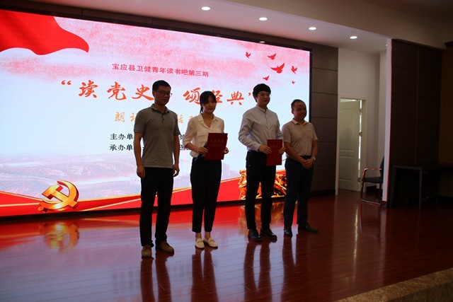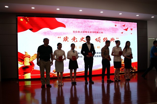7月5日,为相应习近平主席号召,为建党98周年献礼,由宝应县卫健委团委主办,宝应县中医医院团支部承办的“卫健青年读书吧”第三期“读党史,诵经典”主题朗诵比赛在中医院大会议室举行。县委宣传部副部长张大庆、县编办副主任龚海祺、县文明办副主任徐志国、团县委副书记洪玲艳、县卫健委党委副书记张正军、县中医医院支部书记王心亚作为嘉宾莅临本次活动。