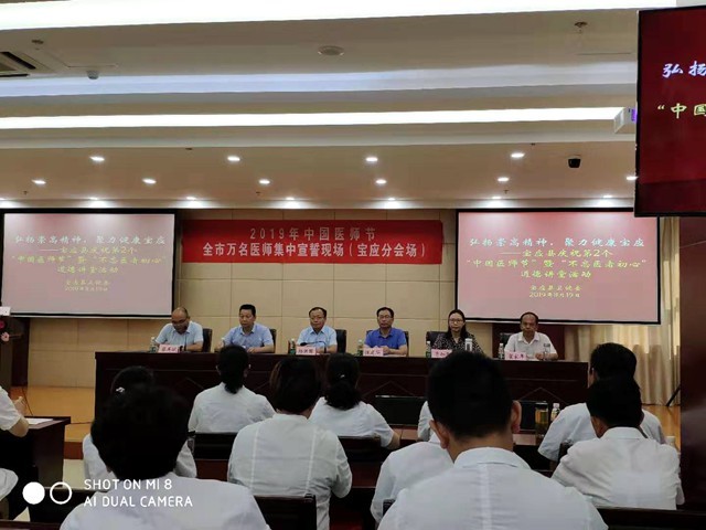 2019年8月19日下午3点,为弘扬传播医疗行业正能量,在全社会营造尊医重卫的良好氛围,激励广大卫生健康工作者职业自豪感,更好地为人民健康服务;由宝应县卫健委主办的弘扬崇高精神,聚力健康宝应——宝应县庆祝第2个“中国医师节”暨“不忘医者初心”道德讲堂活动,在县疾控中心3楼视频会议室拉开帷幕。县疾控中心、卫监所、各医疗机构主要负责人、分管医疗负责人及医师代表出席参与了活动。