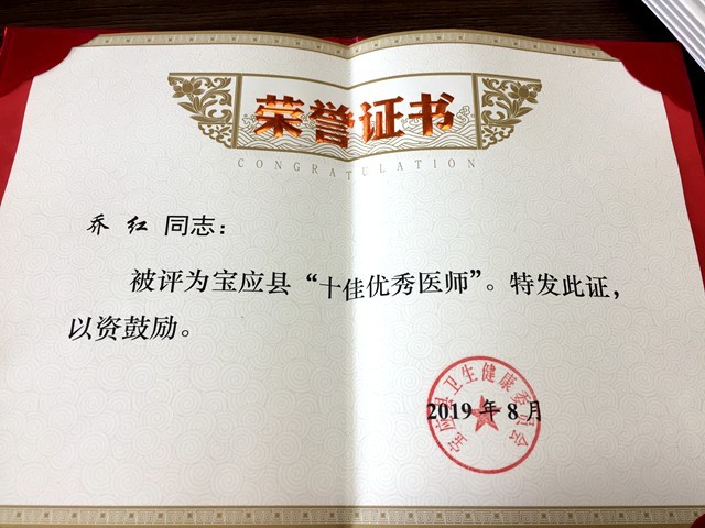此次活动,县卫健委一共表彰了二十名来自基层医疗战线的“十佳优秀医师”和“十佳乡村医生”,激励宝应县医师群体自尊自爱、奋发向上,弘扬新时期“敬佑生命、救死扶伤、甘于奉献、大爱无疆”的职业精神。而乔红主任作为被表彰的其中一员,也表示会戒骄戒躁、再接再厉,不断提升自身综合素质和专业水平,为人民群众的健康服务,为建设“健康宝应”做出应有的贡献。