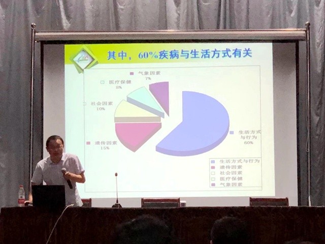 许景亮副院长以我国近年来居民健康统计数据为基础,再以身边的人和事举例,详细分析了当下中青年健康现状。他用这种通俗易懂的语言,为到场的教师们阐述了健康生活方式的重要性,并图文并茂地讲解了对高血压、高血脂、高血糖、高血尿酸以及常见恶性肿瘤的防范要点。针对慢病防控,要树立健康生活方式理念,合理膳食、适量运动、戒烟限酒、心理平衡,同时有针对性地定期检查身体,及时发现问题,及时干预。许景亮副院长的生动演讲,引发了在场教师们的强烈共鸣,现场气氛十分热烈。