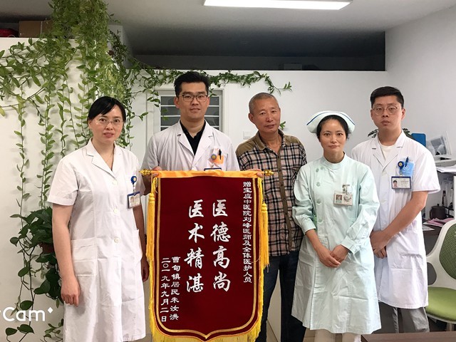 2019年9月2日,基本恢复健康的患者及其家属,特地送来了锦旗表示感谢,并感慨以后有病还是要去接受正规医疗,自诊只能自己吓自己啊。(万骏)