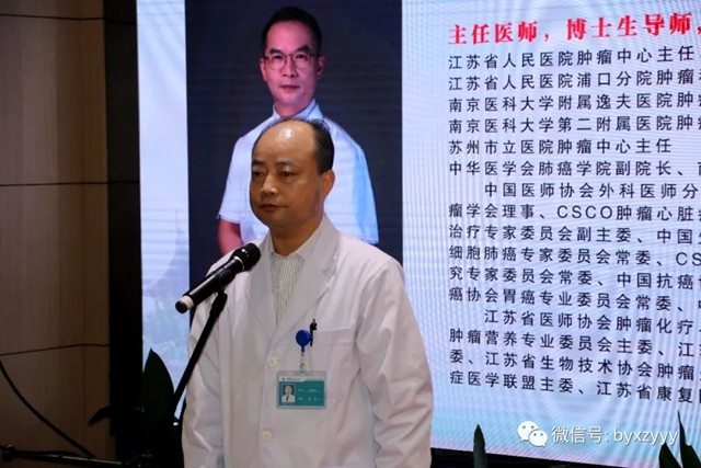 江苏省人民医院肿瘤科于1999年成立,是江苏省“十一五”肿瘤学重点专科。2012年成功获批江苏省肿瘤转化研究中心,是江苏省“兴卫工程”高技术平台培育点之一,肿瘤学实验室为江苏省135重点实验室之一。现已发展成集医、教、研于一体的具有一定规模的与世界接轨的肿瘤专科。2018年12月4日,被国家卫健委公布为首批肿瘤多学科诊疗试点医院。江苏省人民医院在肿瘤科领域的造诣极深,束永前教授团队的医疗水平也一直受到广大患者好评。此次束永前教授于我院挂牌成立名师工作室,不但能够更好的满足本地肿瘤患者的高层次就医需求,让更多宝应人民享受到三甲大医院专家的医疗服务,还将推动我院肿瘤科的技术创新与人才培养。