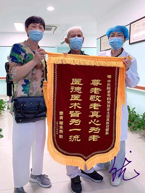 8月5日下午,谢大爷及其家人给宝应中医院老年病科送来了一面锦旗,感谢医护团队对他身体健康做出的贡献。吴佳宏副主任事后表示,其实老爷子早就准备好了这面锦旗,但是她和医护团队一直都没有收,直到老爷子术后恢复良好,她们的心才放了下来。同时,她也表示,医疗手术的成功确实非常重要,但术后恢复的重要性同样不能忽视,中医在养生、调理病体方面的传统优势,我们新一代中医人从来没有忘记。(万骏)