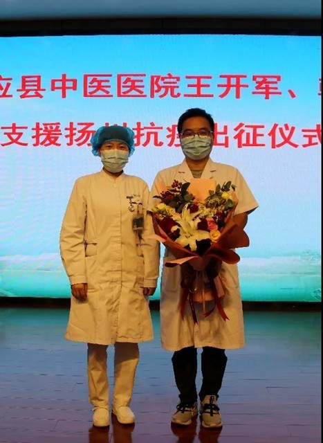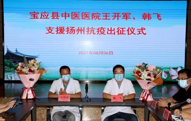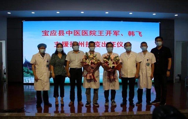 此次支援扬州三院的王开军、韩飞表示,一方有难,八方支援,抵达扬州后将不畏艰难,听从安排、做好防护、认真工作,展示出宝应县中医医院人的精神面貌和良好的工作作风,守护好扬州市民的安宁和健康。